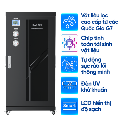 Karofi KST-79 là giải pháp lọc tổng cao cấp dành cho gia đình hiện đại, đặc biệt phù hợp với villa, nhà phố, không gian có sân vườn. Sản phẩm giúp loại bỏ tối đa Clo dư, cặn bẩn, kim loại nặng và các tạp chất độc hại trong nước.