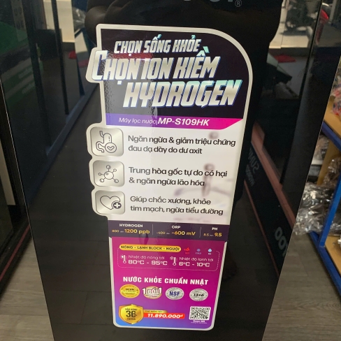 Với lõi ion kiềm hydrogen nhập khẩu Hàn Quốc, nước ion kiềm hydrogen tạo ra từ MP-S109HK có chỉ số cân bằng lý tưởng trong thời gian dài. Người dùng hoàn toàn có thể an tâm về chất lượng nước sau lọc với mức pH ổn định 8.5-9.5, hàm lượng hydrogen 800- 1200ppb, chỉ số ORP âm sâu -400 đến -600mV.