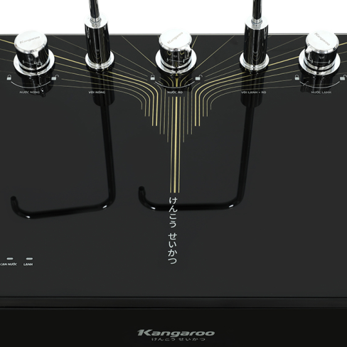 KG10A13 sử dụng 2 vòi nóng lạnh độc lập, 3 núm xoay cơ học tương ứng với 3 chế độ nước nóng – lạnh – hydrogen.