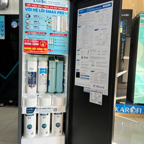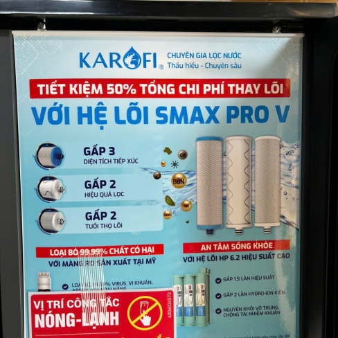 Nâng cấp hệ lõi lọc Smax Pro V độc quyền, tăng gấp 3 lần diện tích tiếp xúc với nước, tăng đến gấp 2 lần hiệu quả lọc. Ứng dụng công nghệ Smart Connect giúp vận hành ổn định, đồng thời nâng cao tuổi thọ lõi lọc gấp 2 lần so với thế hệ lõi lọc thô thế hệ cũ, giảm 50% chi phí thay lõi trong suốt vòng đời sản phẩm.
