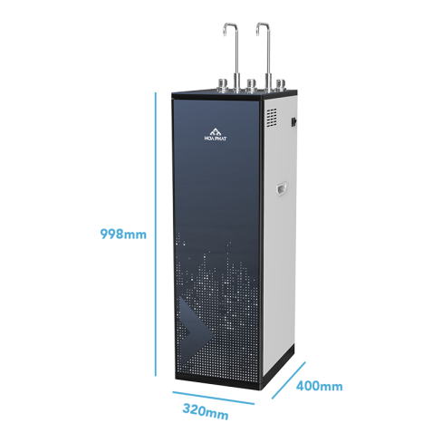Máy lọc nước RO nóng nguội lạnh Hòa Phát HPN666 có kiểu dáng tủ đứng hiện đại, nhỏ gọn với kích thước 320 x 998 x 400 mm và trọng lượng 29kg. Thiết kế tối giản nhưng tinh tế, dễ dàng kết hợp với nội thất tại phòng khách, bếp gia đình, văn phòng, bệnh viện hay trường học. Với kiểu dáng chắc chắn và mặt trước thanh lịch, sản phẩm không chỉ là thiết bị lọc nước mà còn là điểm nhấn cho không gian sống hiện đại.